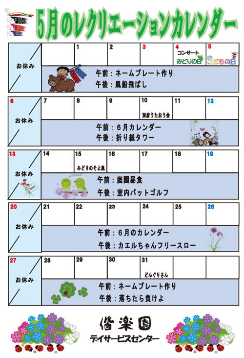 5月のレクリエーションカレンダー