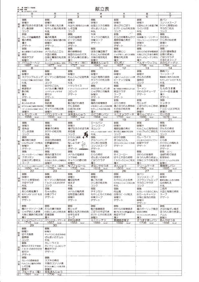 献立表