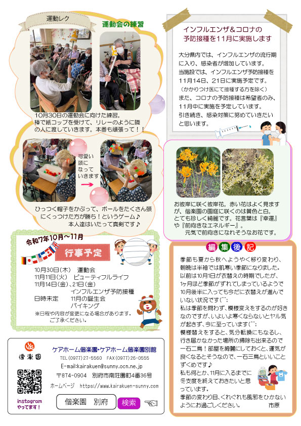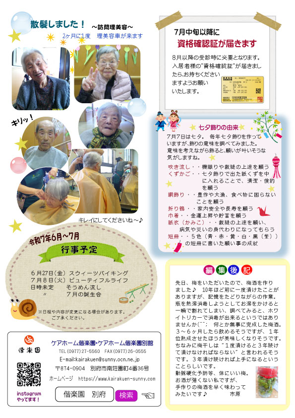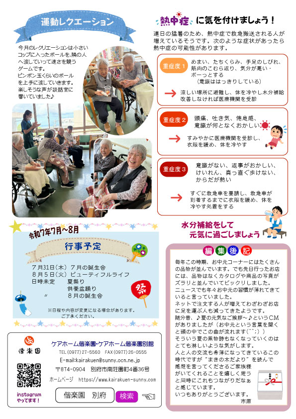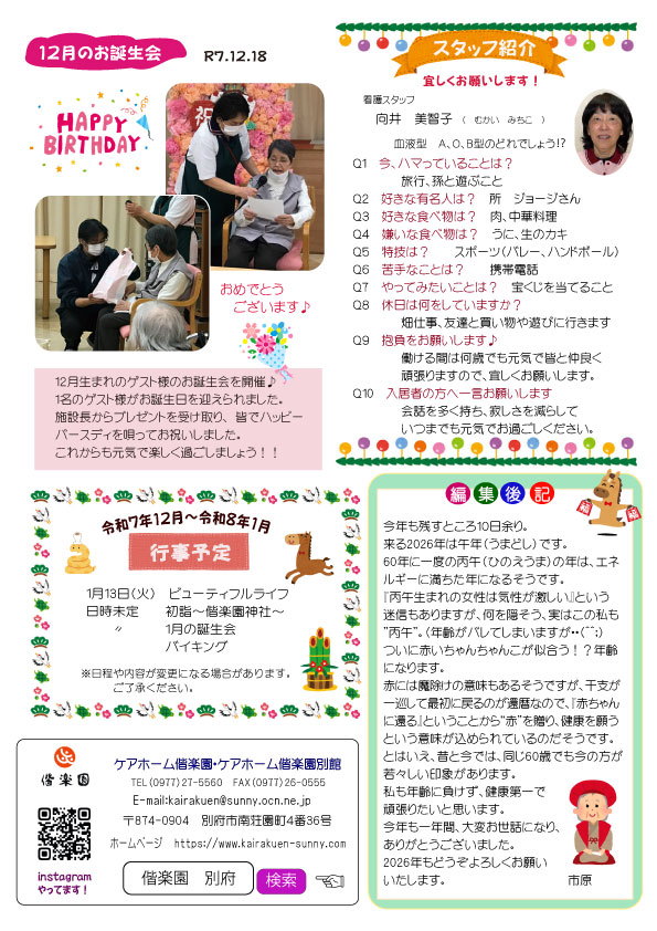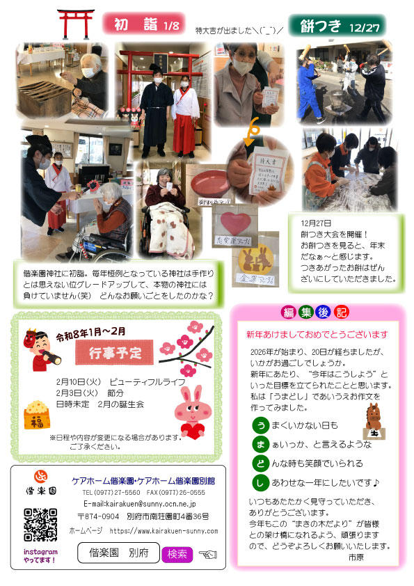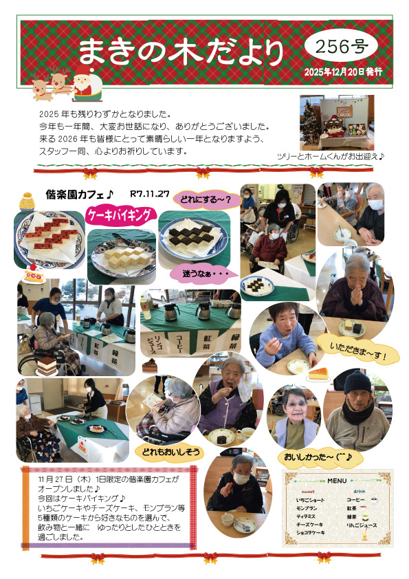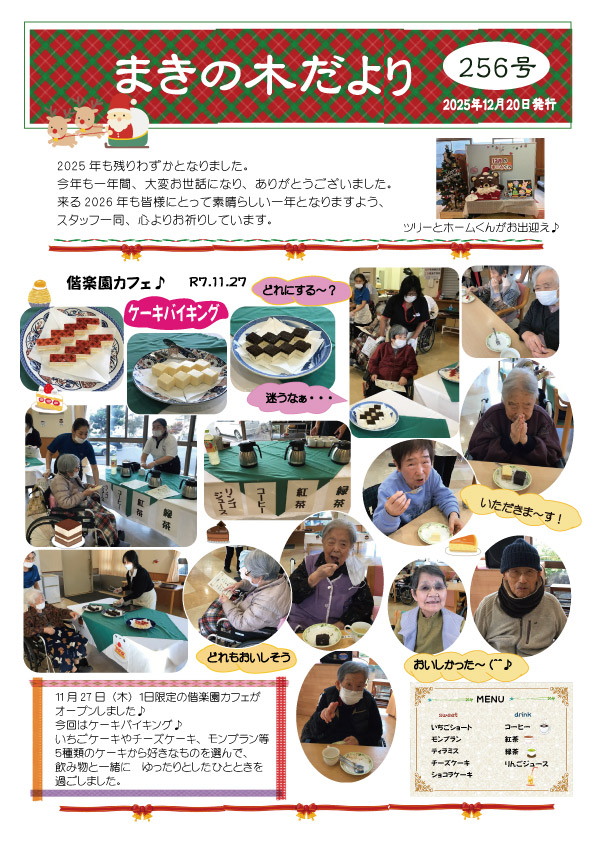 ケアホーム偕楽園では毎月広報誌“まきの木だより”を発行しています。